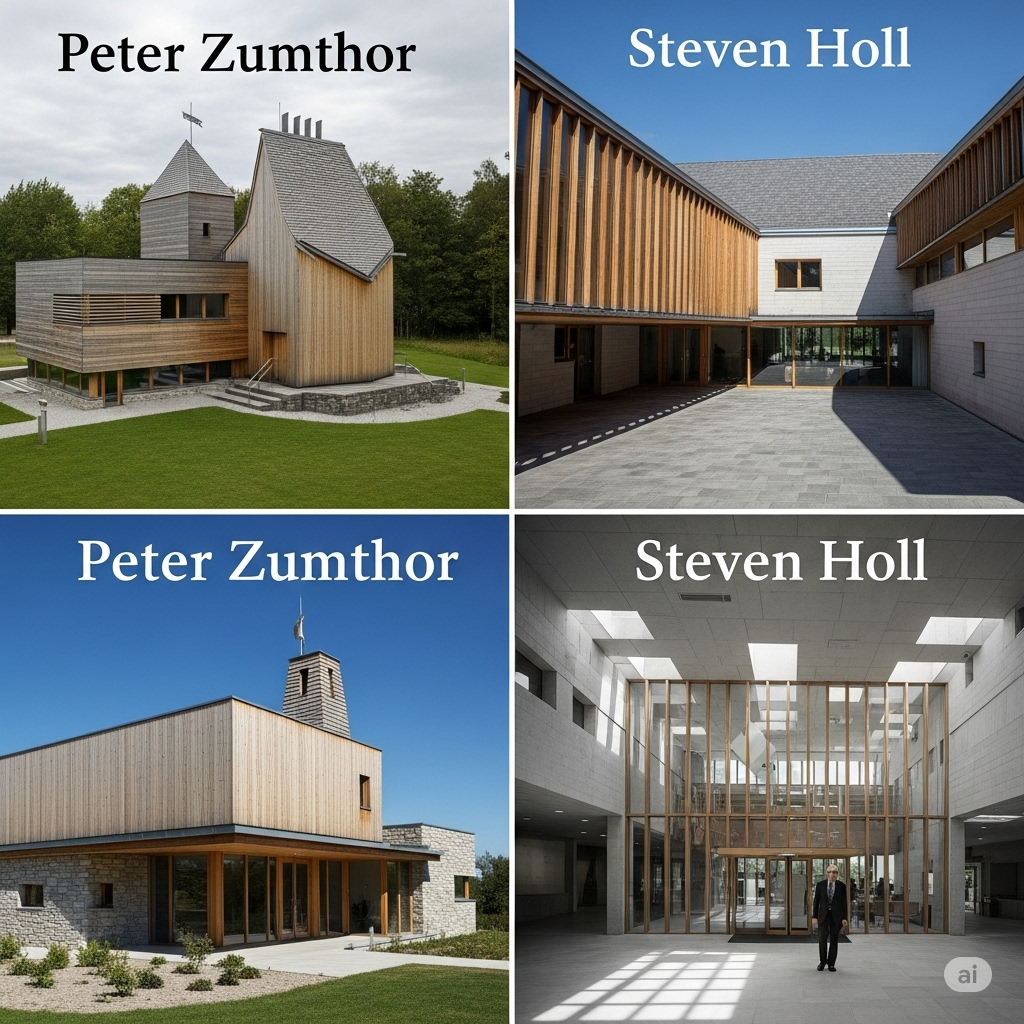 Zumthor se enfoca en una arquitectura fenomenológica, centrada en la experiencia sensorial, la atmósfera y la memoria.